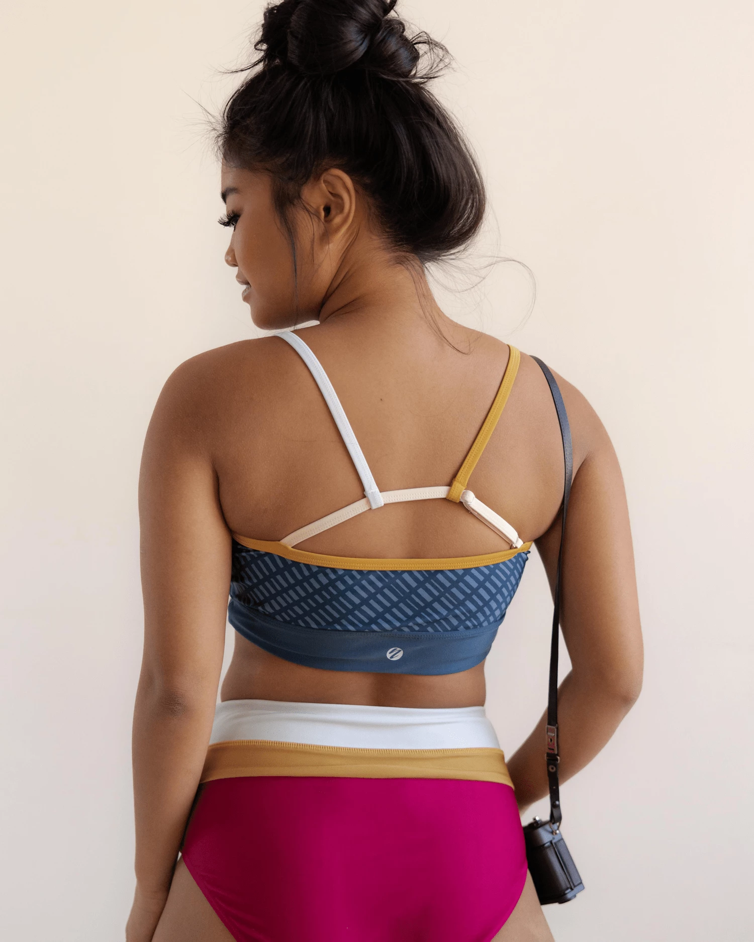 Slightly curved neckline with colorful straps