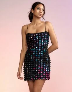 Multi color sequin appliqué dress. The ultimate party dress!