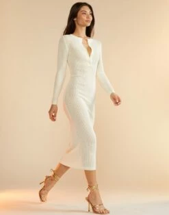 Slip into this open knit crochet. In a semi-sheer fitted silhouette.