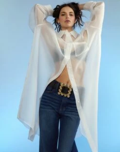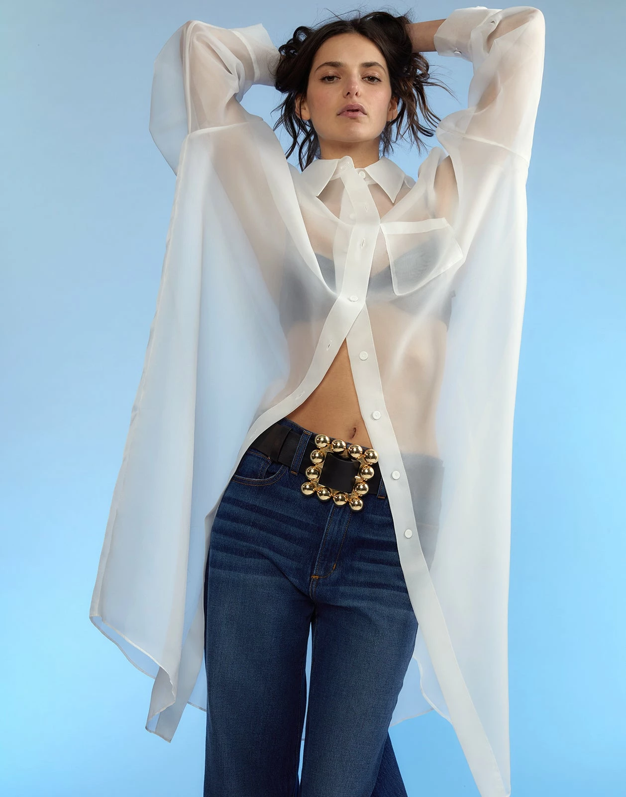 The oversized buckle belt is crafted from supple genuine leather with an oversized gold-tone brass buckle.
