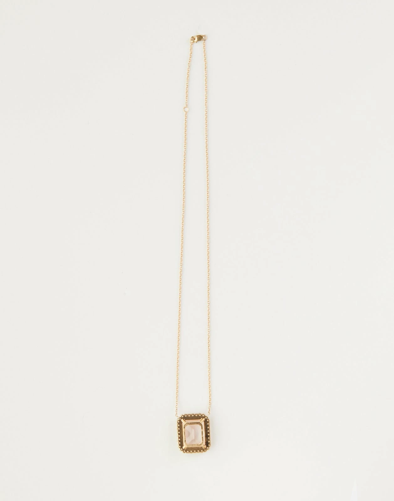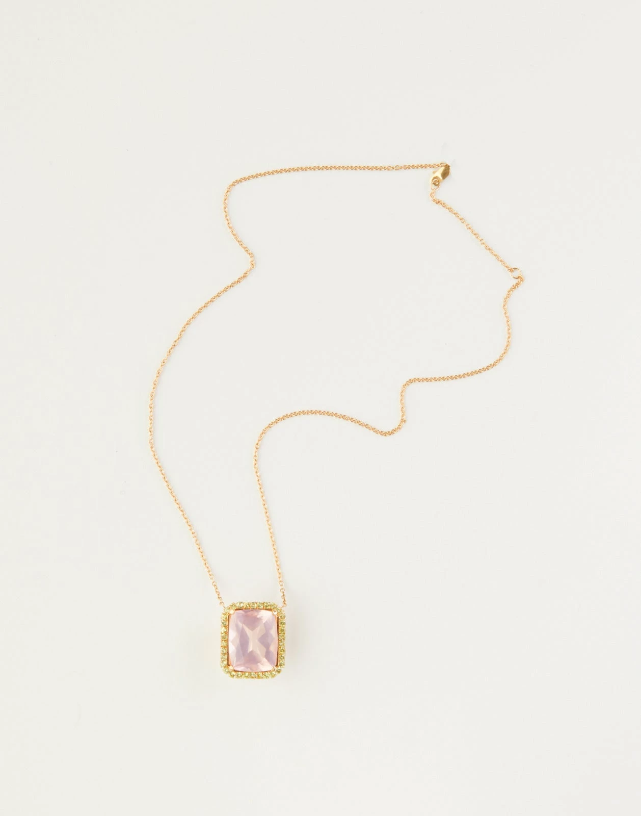 - 18mm x 14mm Emerald cut Rose Quartz with 2mm Round peridot Side Stones