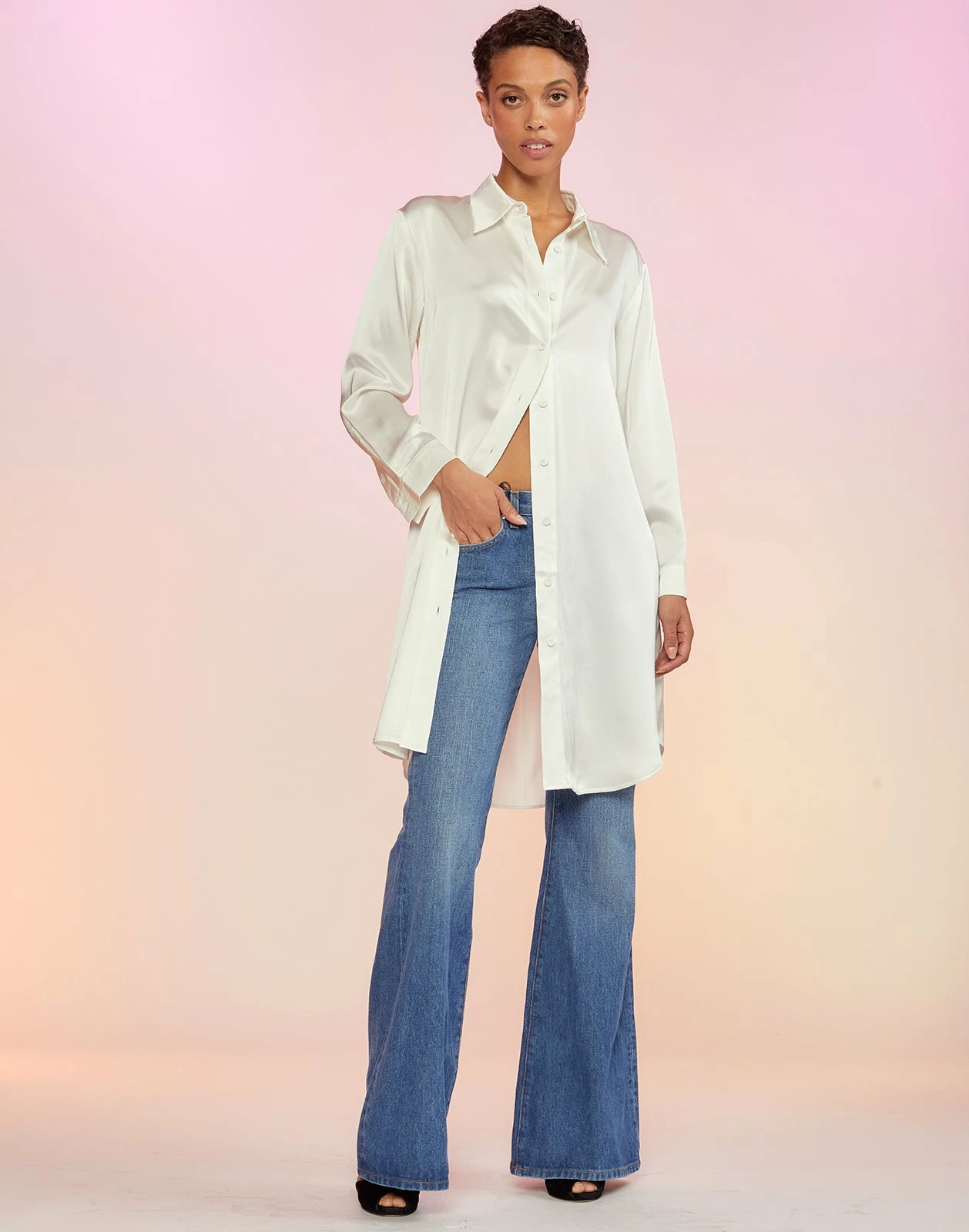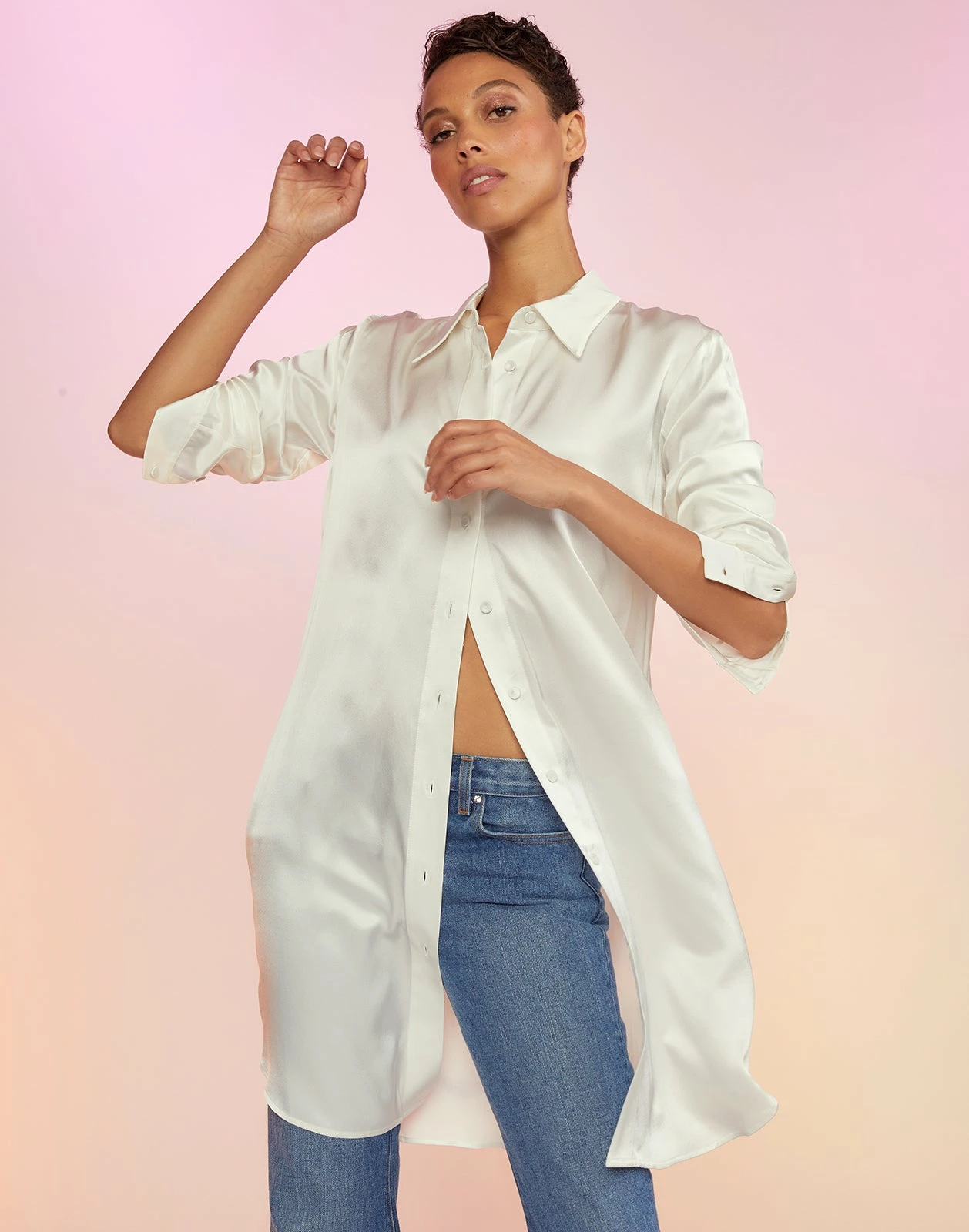 CYNTHIA ROWLEY Silk Charmeuse Shirt Dress