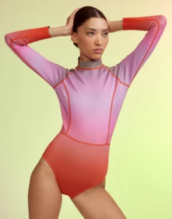 - Covered back zip with nylon pull and secure velcro closure at high neck