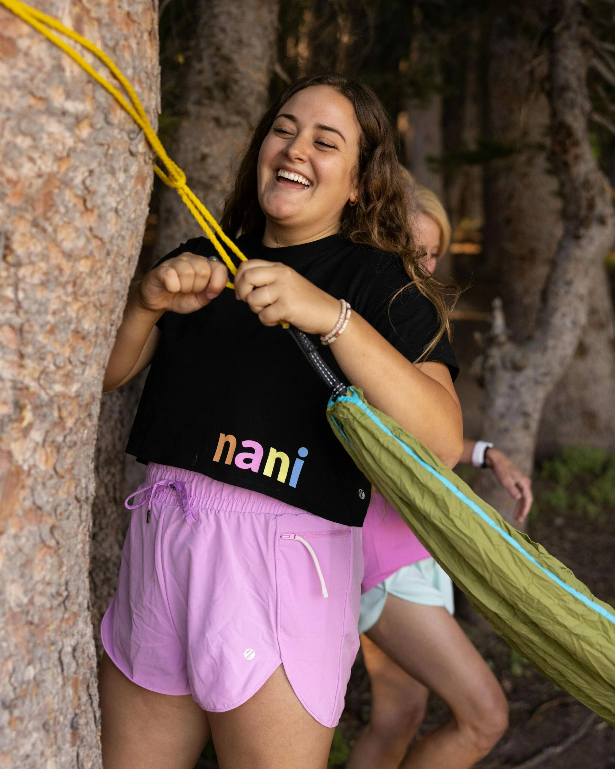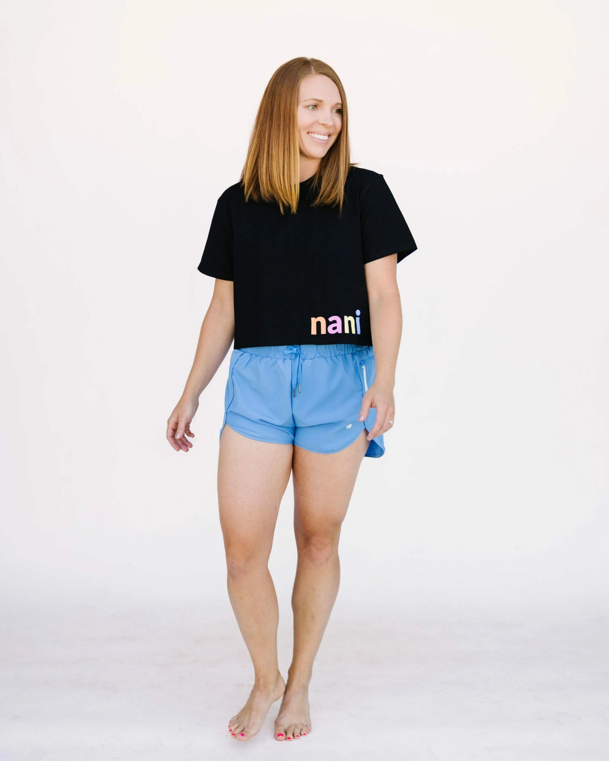 The Exclusive Black Nani Tee is perfect for any occasion – hiking (of course!), working out, & biking… you can even wear it as a swim cover-up! The buttery soft fabric has just the right amount of stretch and will become your favorite lightweight outdoor adventure tee. With the added Nani Lettering of course