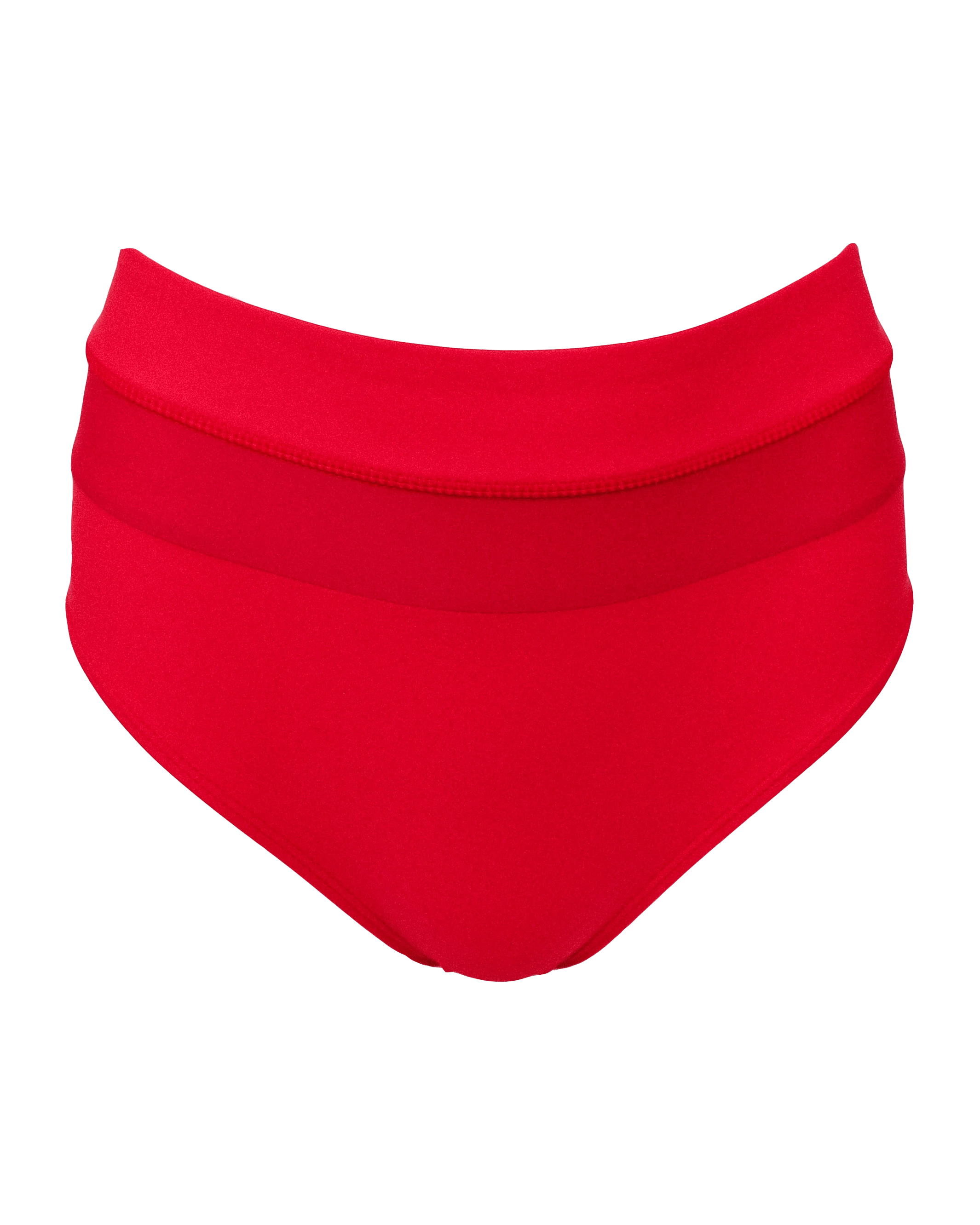 The Nani Colorblock Bottom allows you to embrace any water sport with confidence and still look amazing. Created for comfortable, all-day wear. Solid bright red color with a darker Lipstick Red insert, slightly brighter than our Red Poppy. Matches the Leilani Patchwork Crop.