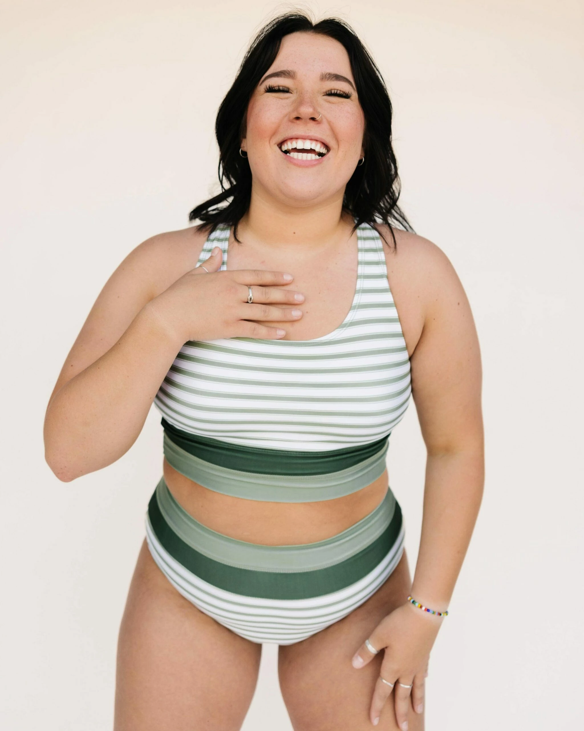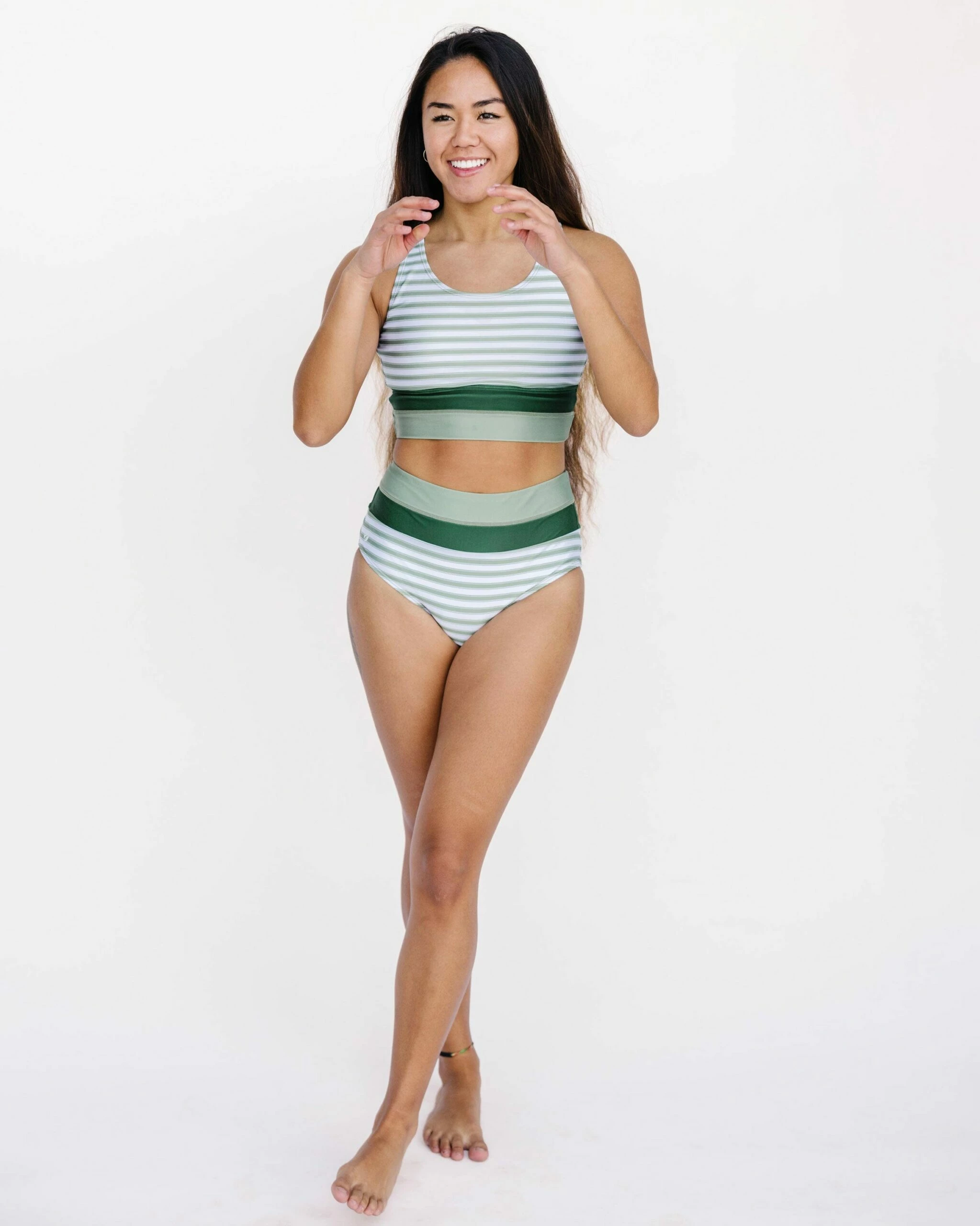 The Nani Cut Back Swim Crop offers the comfort and support of a favorite sports bra, designed as a hybrid for yoga class and all your outdoor adventures.