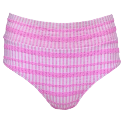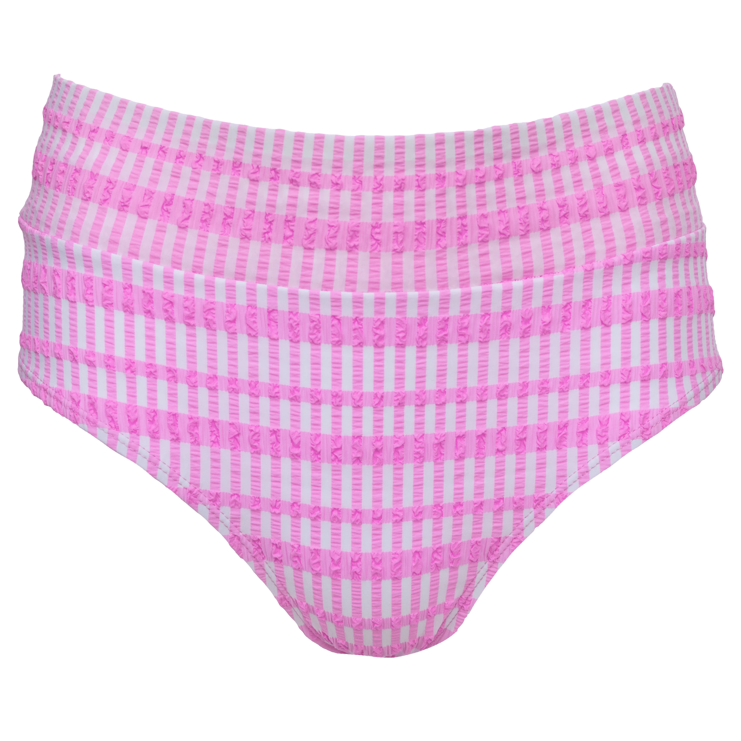 Our mid rise coverage bottom is both supportive and flattering. It’s made with three-dimensional textured gingham fabric in a modern bright pink and white check that will show off your spunky personality.