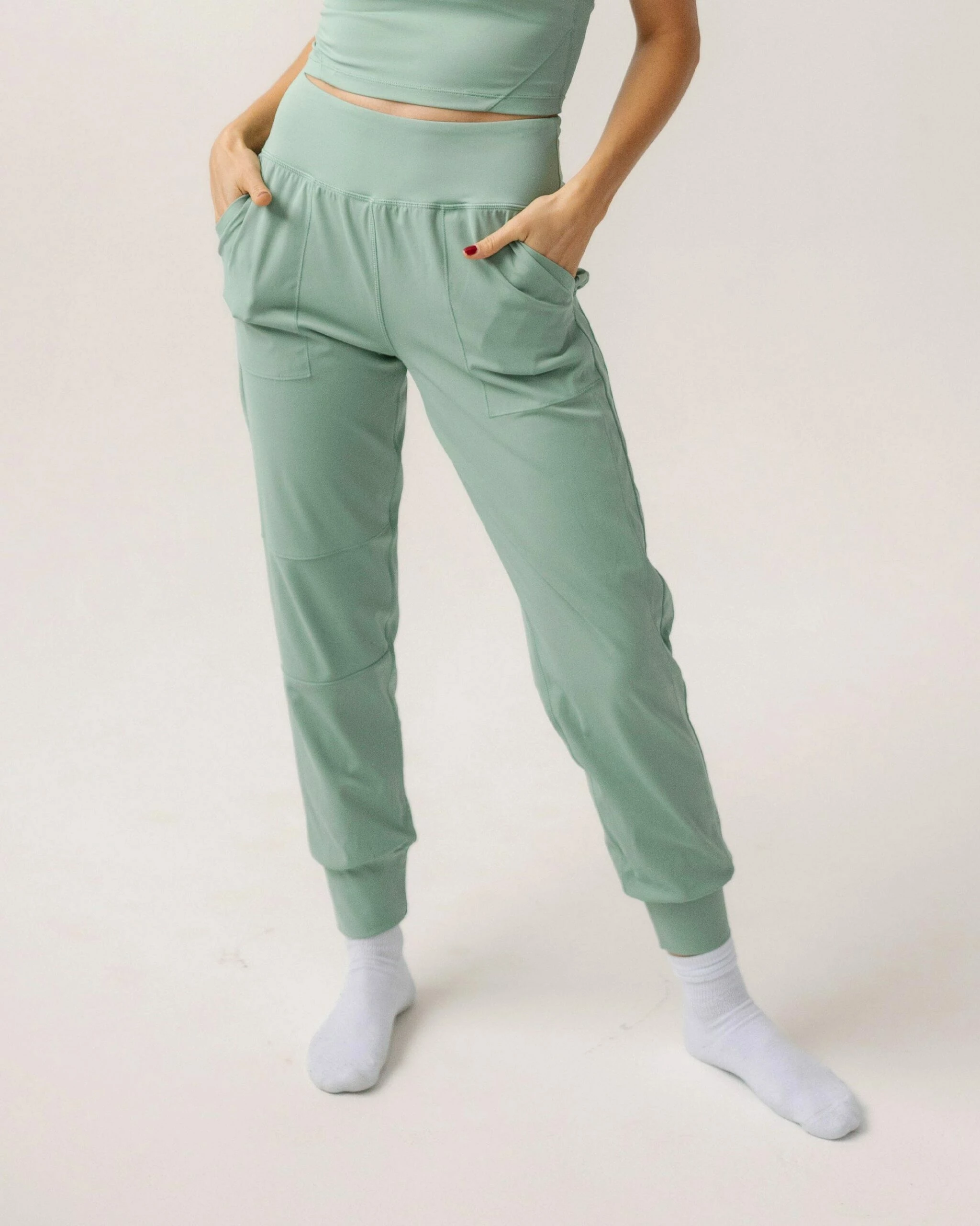 The Trek Jogger is dressy enough to wear to town, lightweight enough to work out in, and chill enough to lounge around the house. Beautiful sage green color.