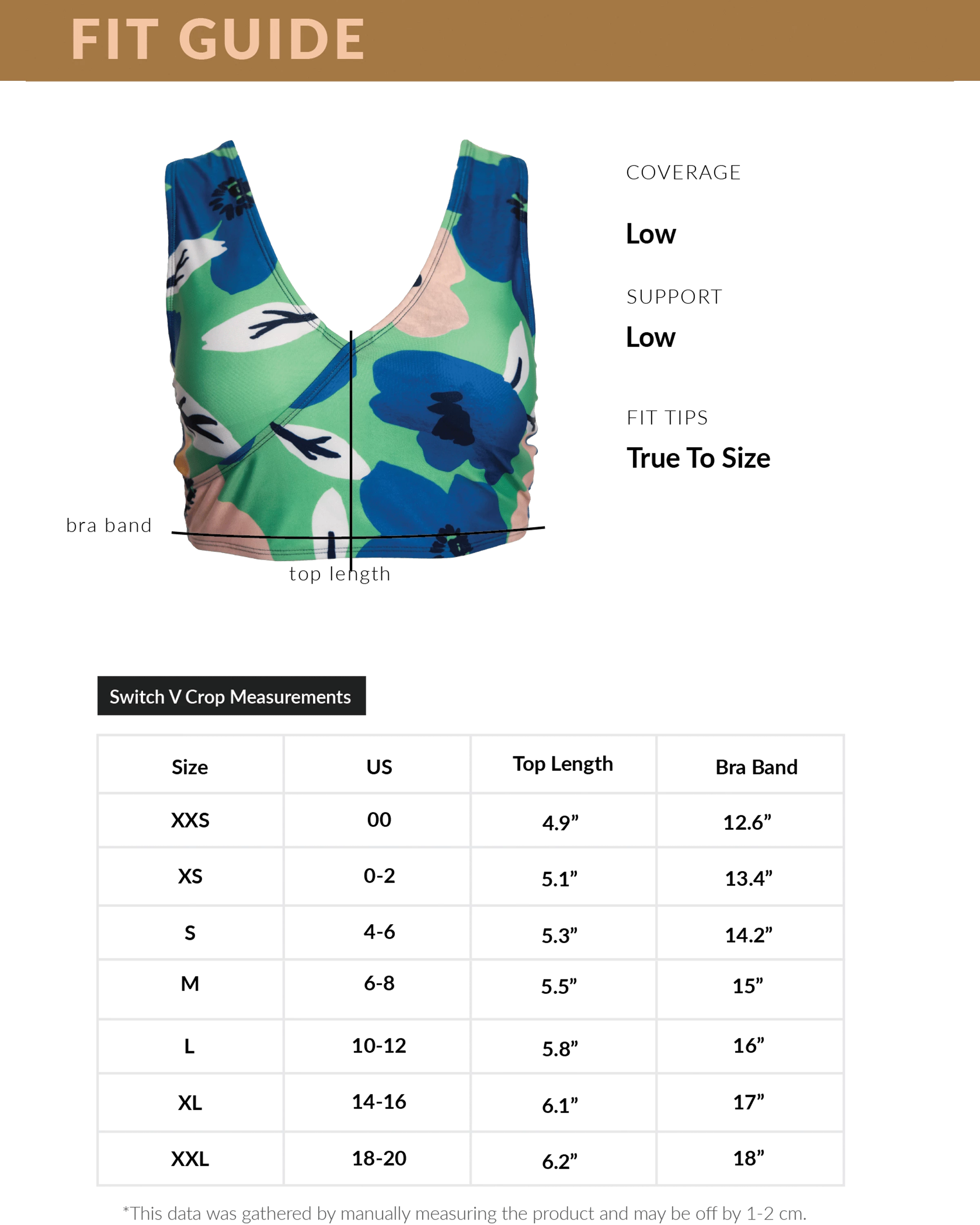 The Sea Floral Switch V Crop is a must have in your swimsuit collection. This unique v-neck swim top featuresĀ ourĀ head-turning Nani Switch V backĀ creatingĀ elevated style in a sporty design. Made make you look great and feel comfortable while attacking any adventure!Ā