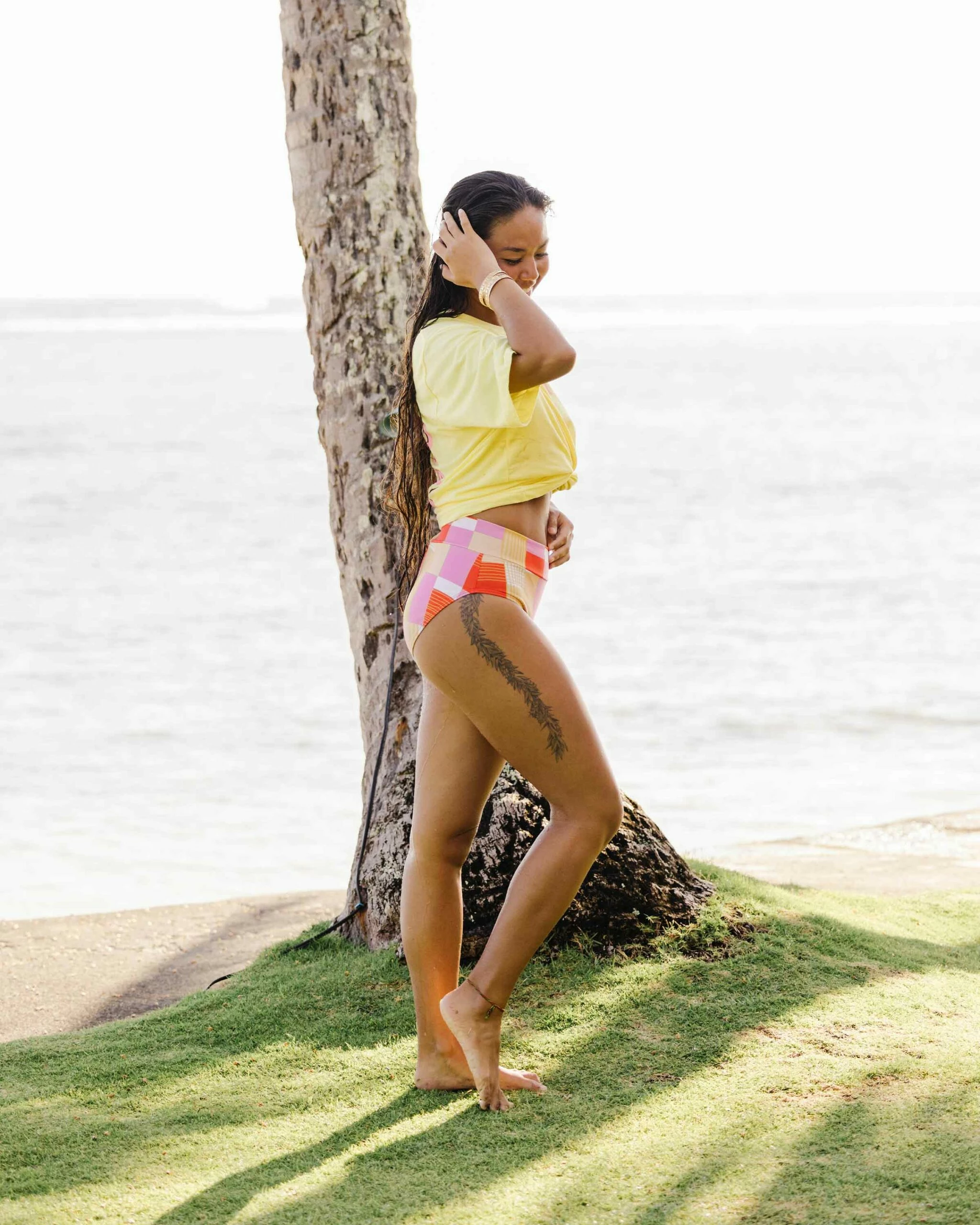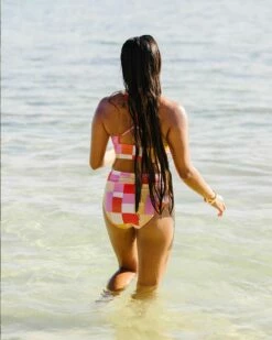 Mixing color and style, this mid rise bottom mixes and matches with a variety of tops in the Endless Summer Collection. Our new colorblocked pattern adds a modern flair to a classic style.