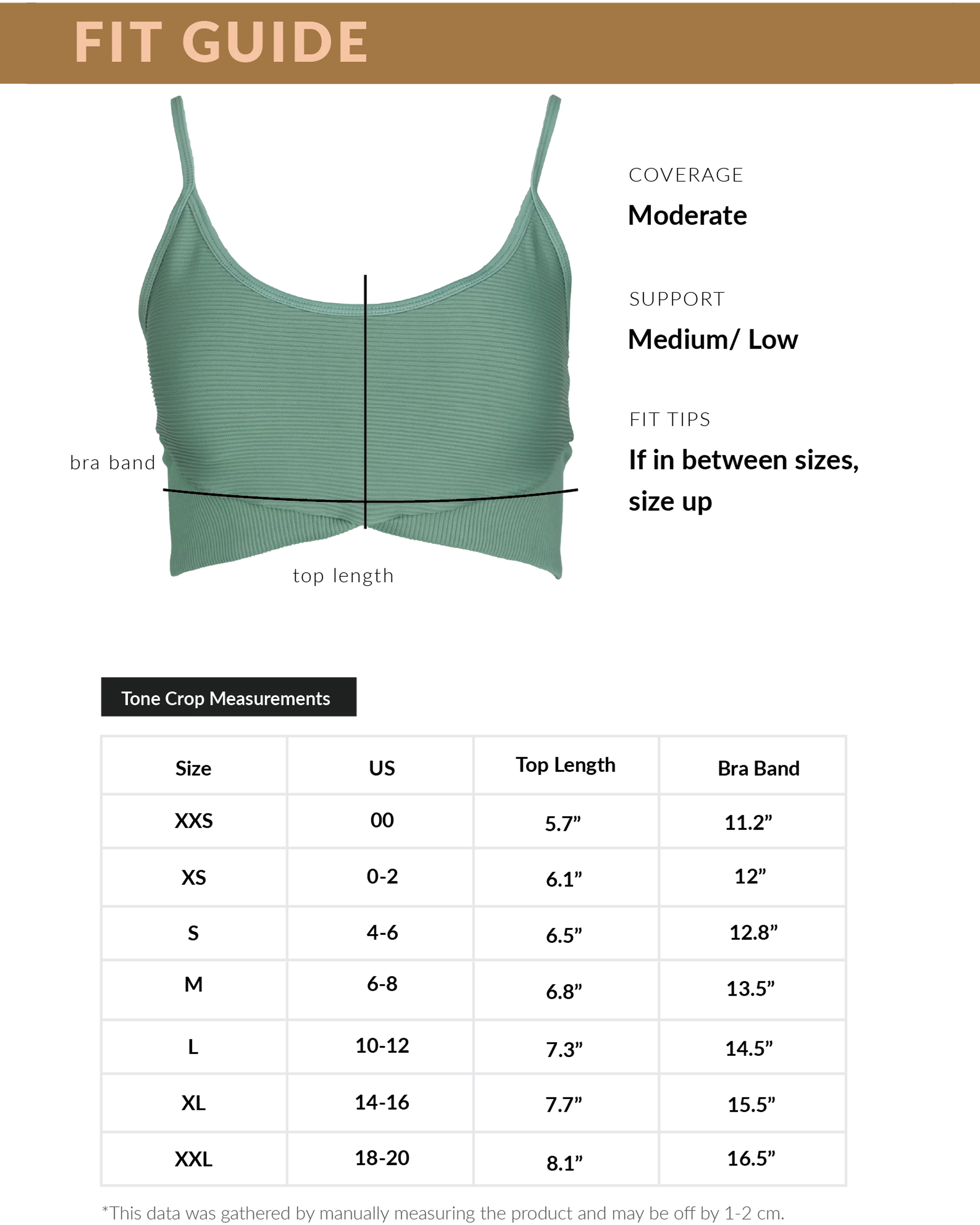 The Textured Pine Tone Crop is the perfect bright and bold top with a soft texture. The Tone Crop is comfortable and gives the best amount of support! Did we mention it also has adjustable spaghetti straps for a customizable fit and minimal tan lines?