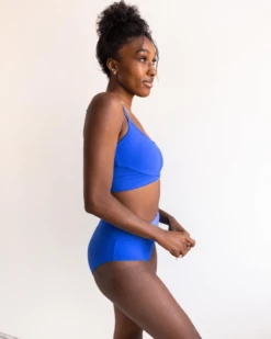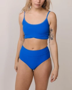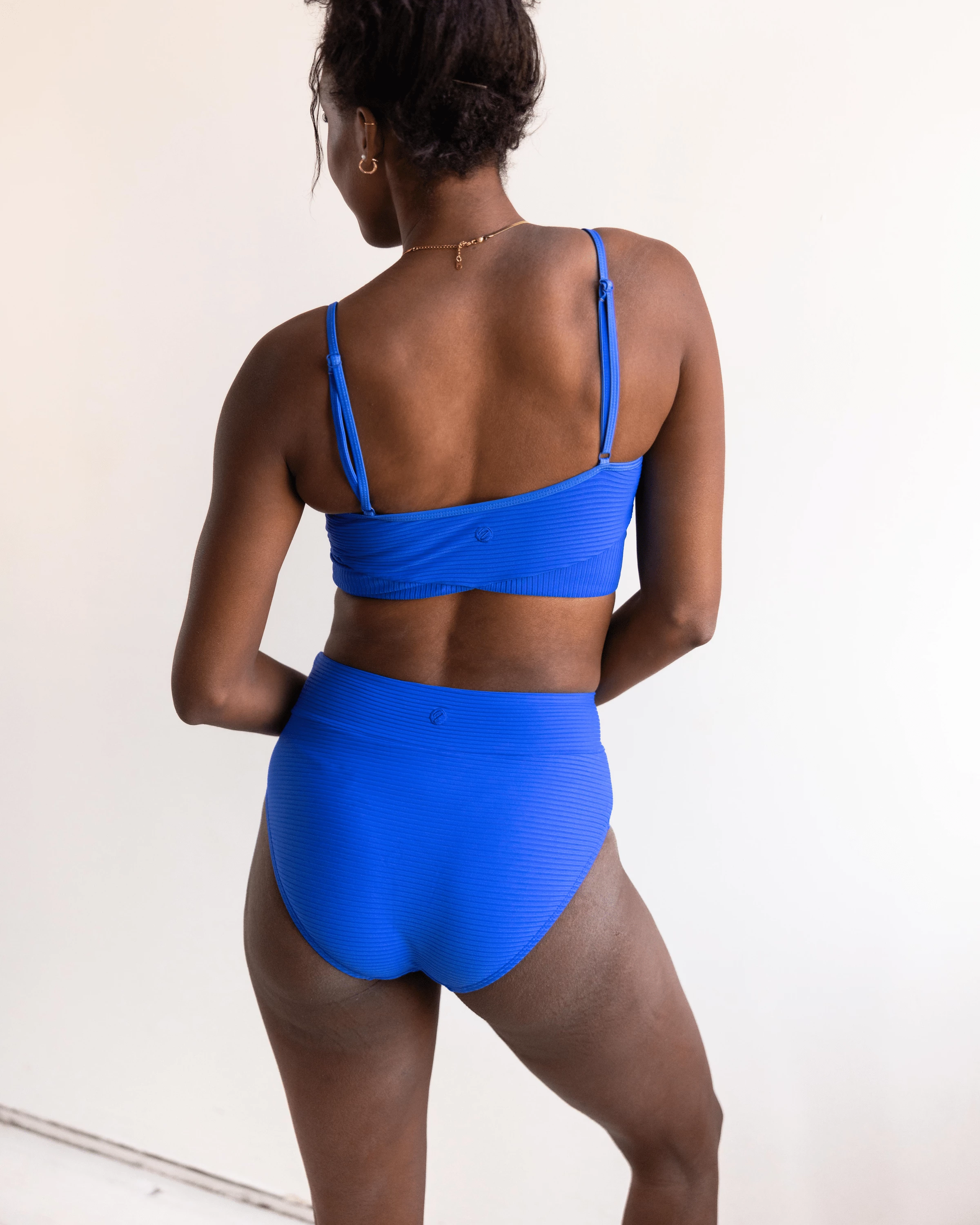 Keeping it simple, the Textured Stripe Cobalt Mid Rise Bottom is the perfect everyday option to pair with the matching textured top. Our new ribbed fabric adds a modern flair to a classic style.