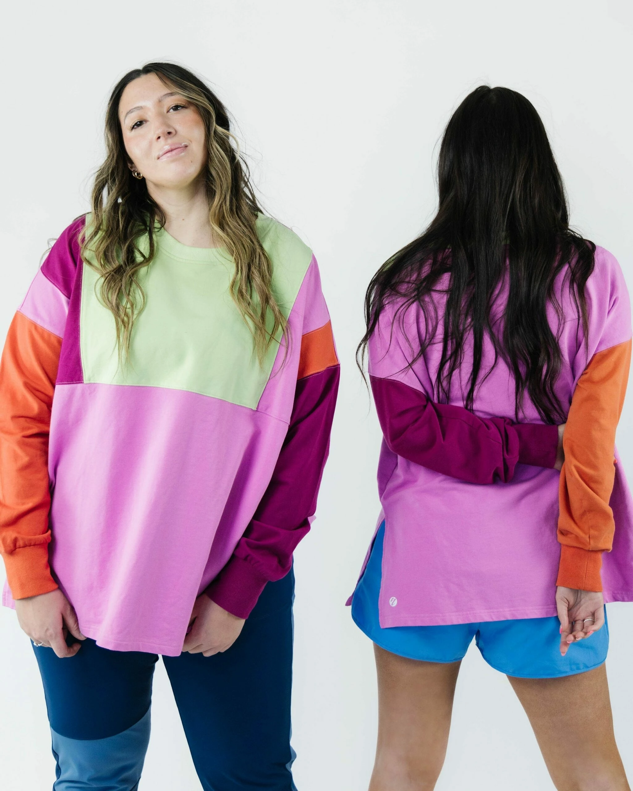 The brand new color-blocked Ascent Sweatshirt is made for you and your adventures! Throw it on after a day at the beach or as you head up to the slopes. Inspired by the bright colors of Spring, this top will look great on YOU!
